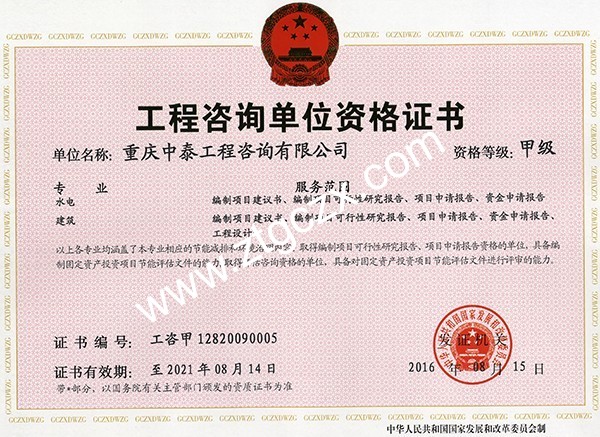中泰咨詢甲級資質(zhì)