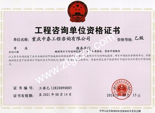 中泰咨詢乙級(jí)資質(zhì)